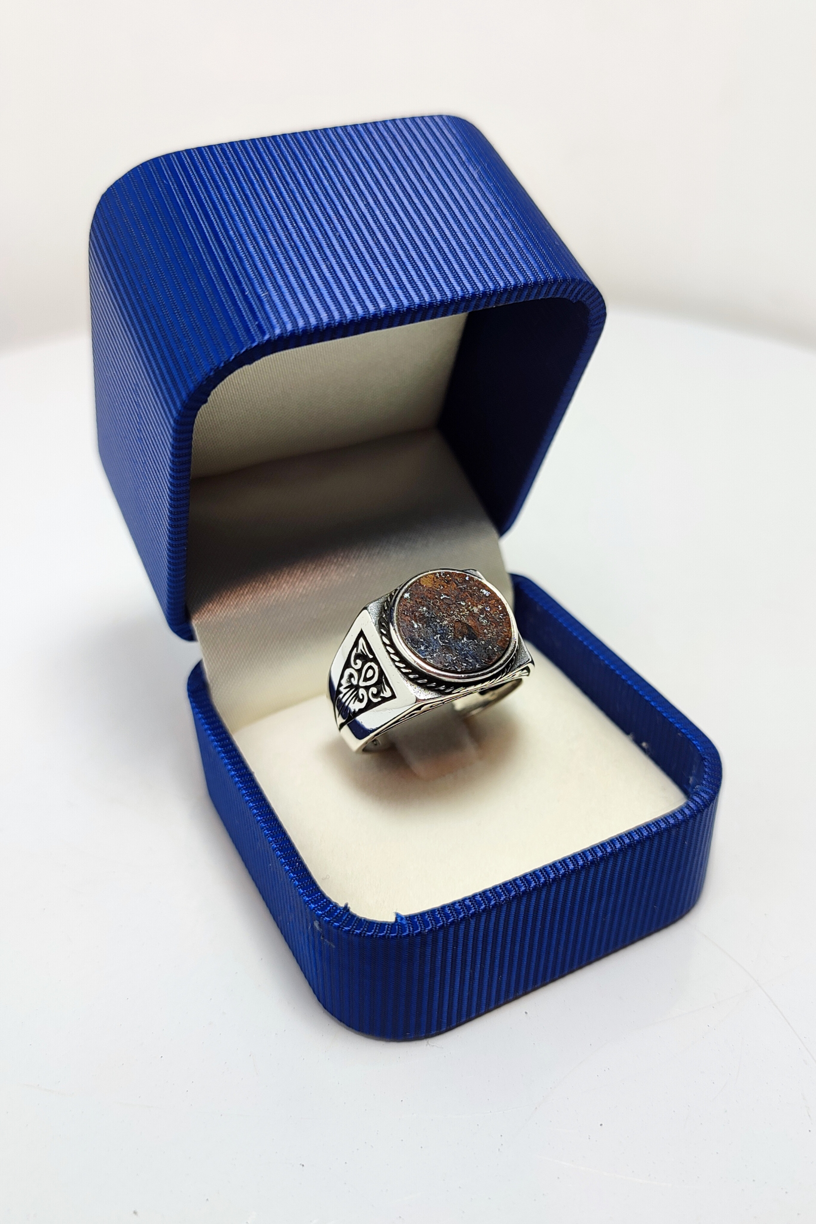 انگشتر مردانه کلاسیک نقره ۹۲۵ + نگین شهابسنگ کندریت L6 ثبت بولتن جهانی / تراش ساده + شناسنامه معتبر دانشگاهی + یک سال خدمات پس از فروش رایگان+ بسته بندی لوکس