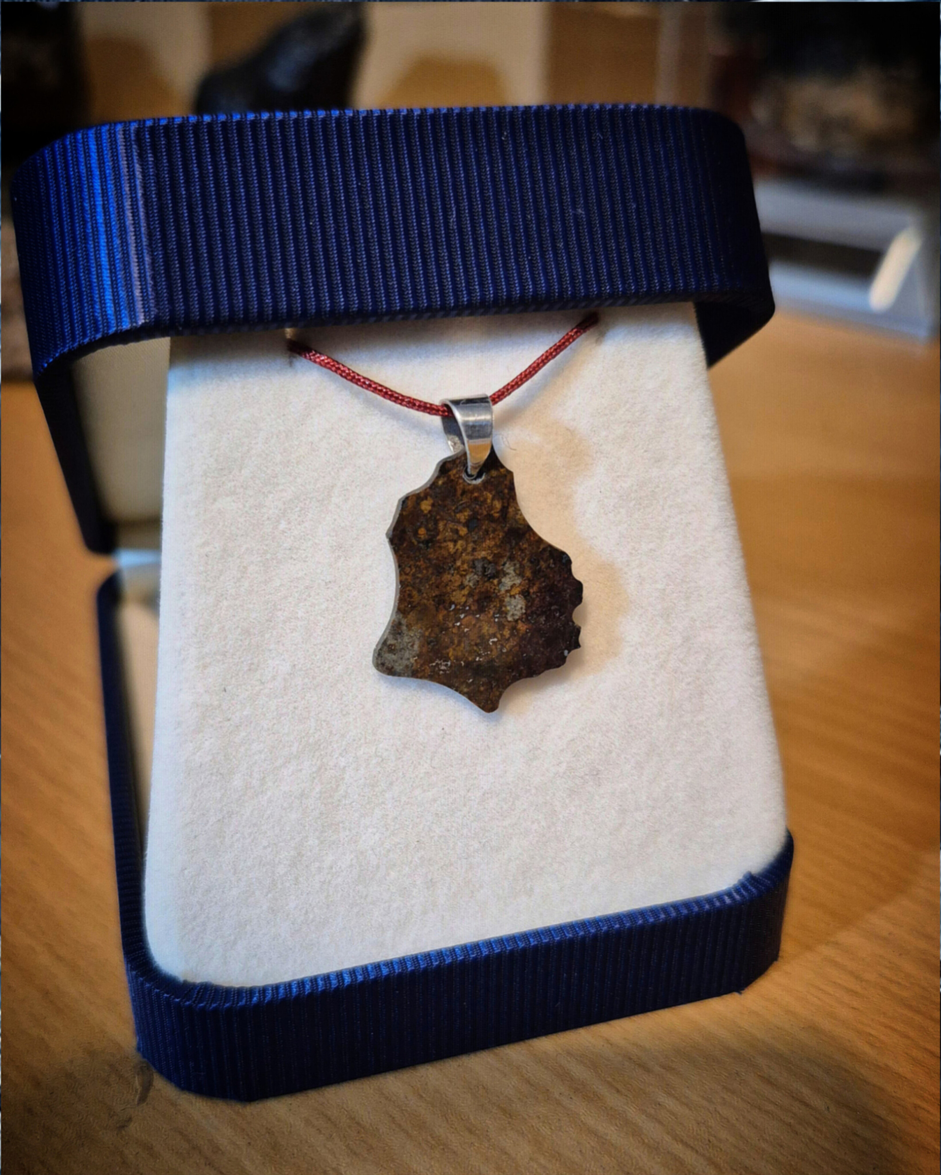 گردنبند اسلایس شهابسنگ کندریتی گروهبندی L6 ثبت شده در بولتن رسمی و جهانی شهابسنگ ها قلاب آویز نقره ۹۲۵ عیار جواهرات شهابسنگ KIVORA / STARKIAN استارکیان